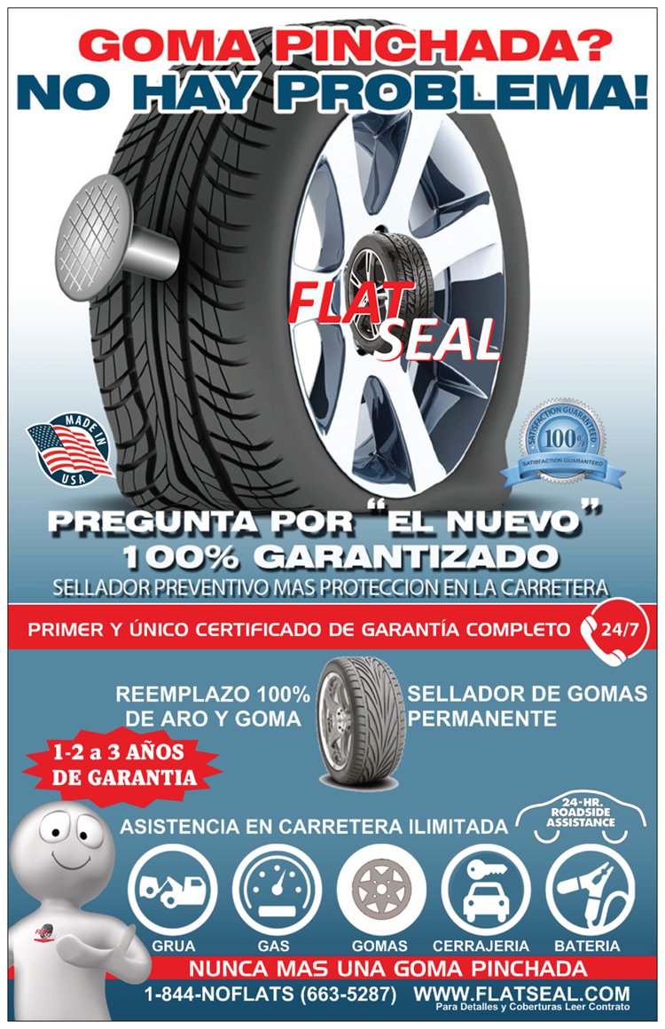 * FLAT SEAL también no cancela la garantía del fabricante del neumático, ni afecta el balanceo del neumático cuando es instalado apropiadamente.